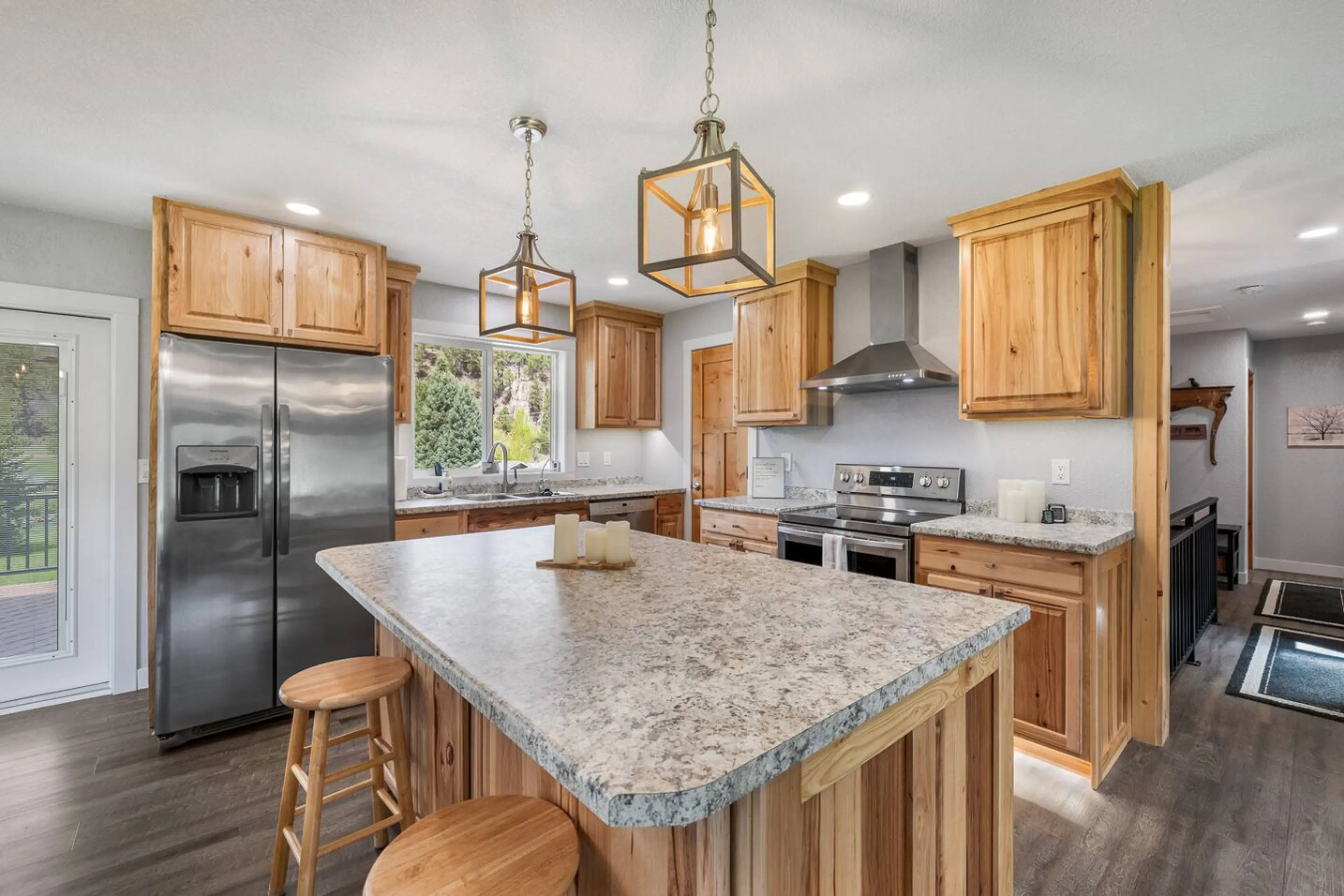 We just wrapped up a wonderful stay for the Sturgis motorcycle rally and visiting family in town and we found this home to work perfectly. It had a nice open kitchen/living room/outdoor deck for making and enjoying dinners together, plenty of parking for our trailer, garage parking for motorcycles, and great wifi to stay connected. Location was beautiful with a little creek and the daily visit from deer. Clean and completely updated home, well stocked with supplies! Would love to stay here again!!